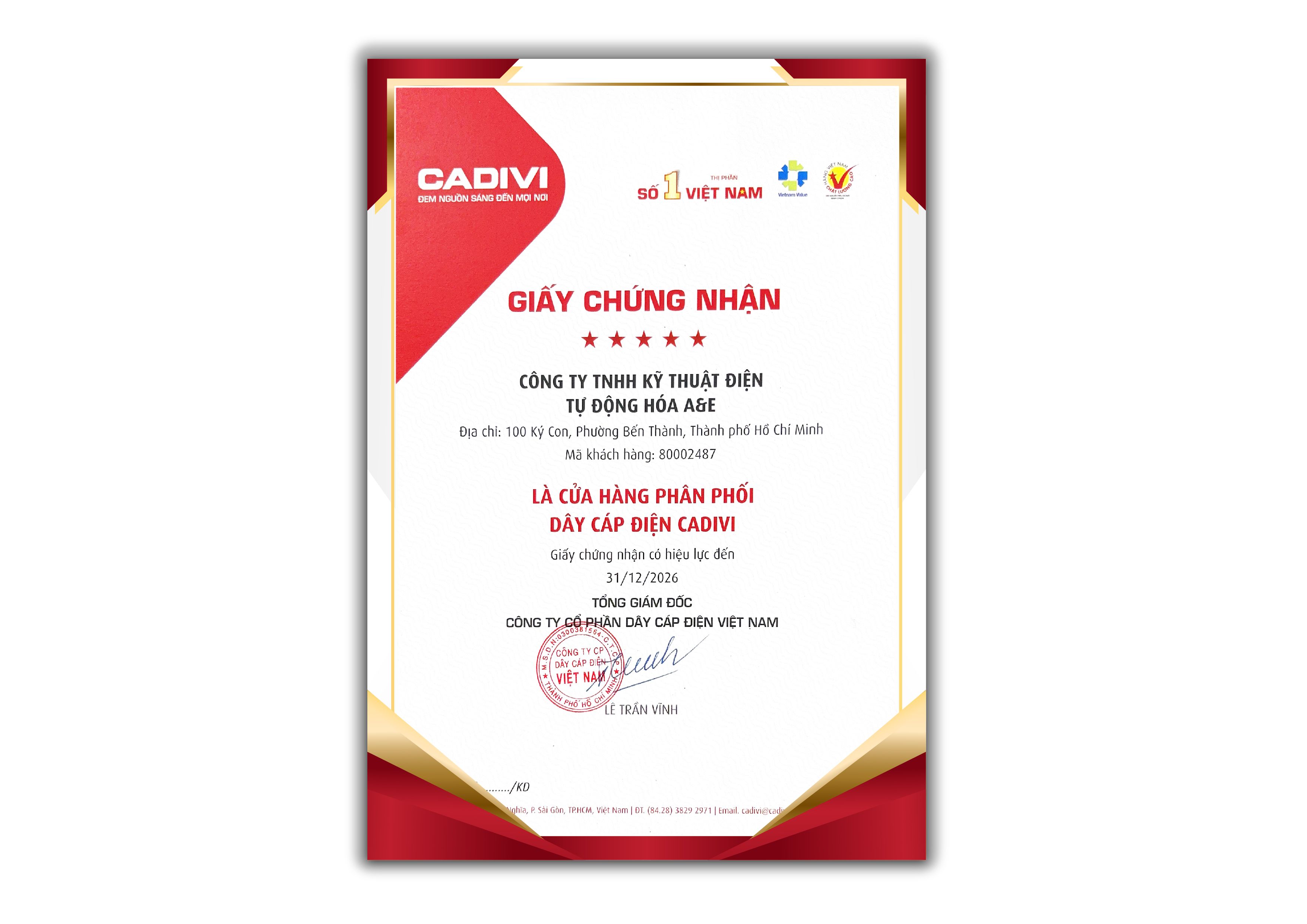 Tự hào kết nối dòng điện Việt! Năm 2026, chúng tôi chính thức trở thành Nhà phân phối dây cáp điện CADIVI – thương hiệu dây cáp điện hàng đầu Việt Nam.