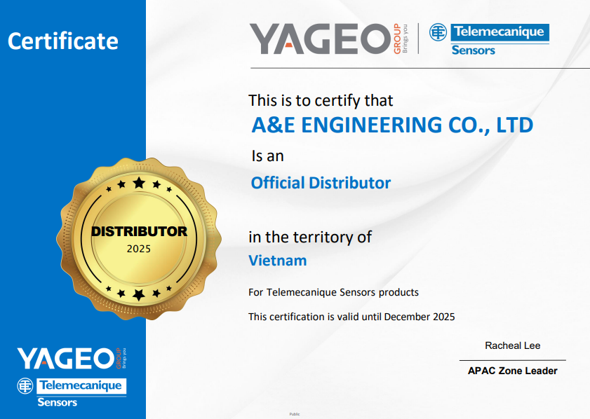 A&E Engineering chính thức trở thành nhà phân phối chính hãng của thương hiệu thiết bị điện Telemecanique Sensors trong năm 2024.